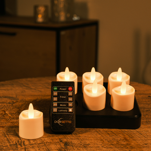 Brandtijd tot 400Â uur, opgeladen in 3,5 uur, waterdicht, met afstandsbedieningDeze oplaadbare waxinelichtje zijn ontworpen voor ultiem gemak. Ze worden opgeladen via een magnetisch inductie-oplaadstation, dat bij de set is inbegrepen. In slechts 3,5 uur zijn de kaarsjes volledig opgeladen en klaar om tot 400Â uur licht te geven.