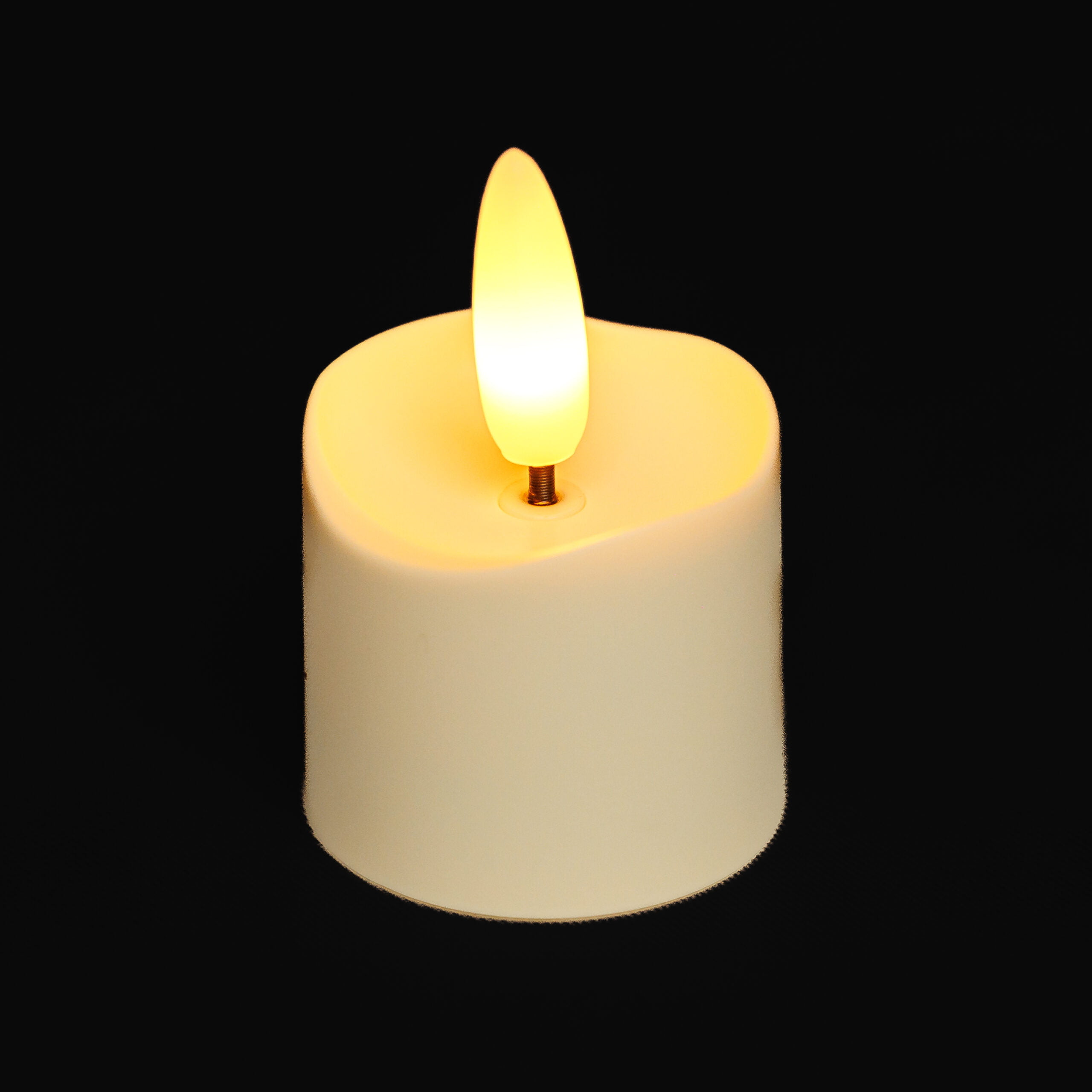 Het vlammetje zweeft boven een zwart steeltje voor een echt kaars effect