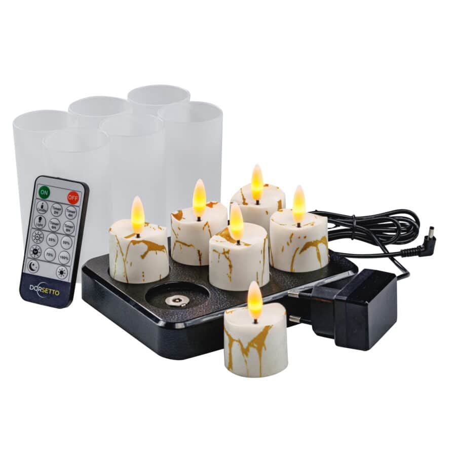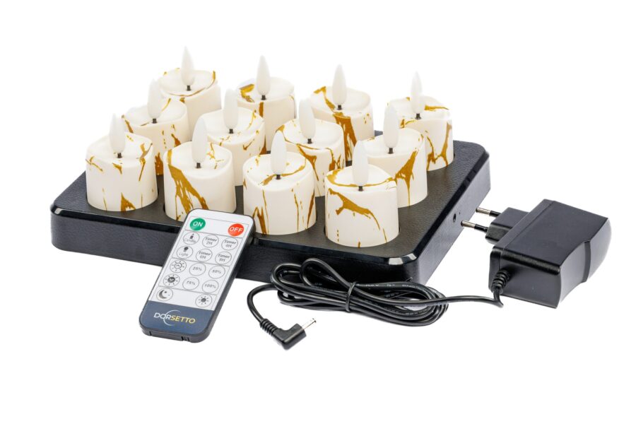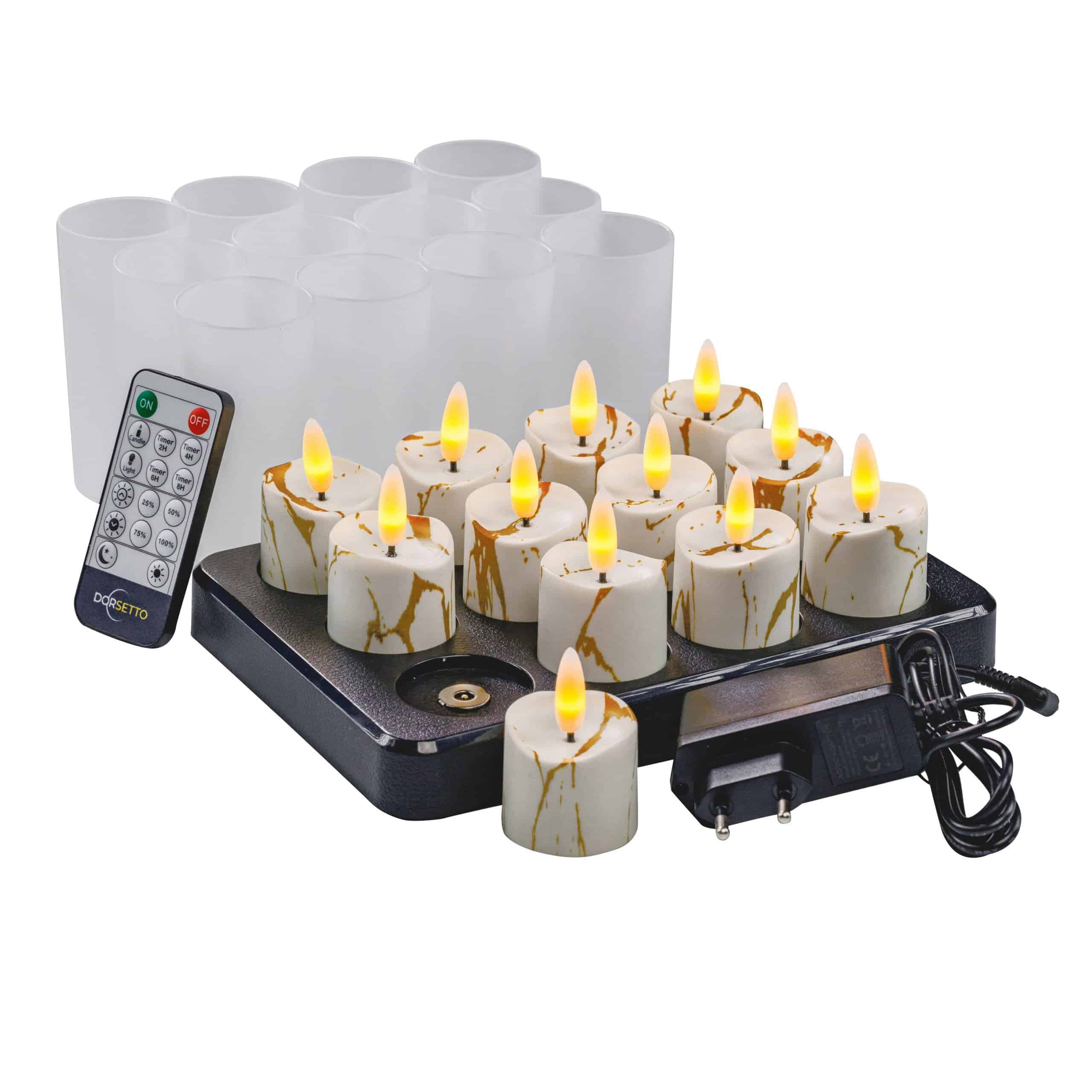 12 LED theelichtjes, oplaadbaar, tot 400 uur brandduur, met afstandsbediening, marmer look