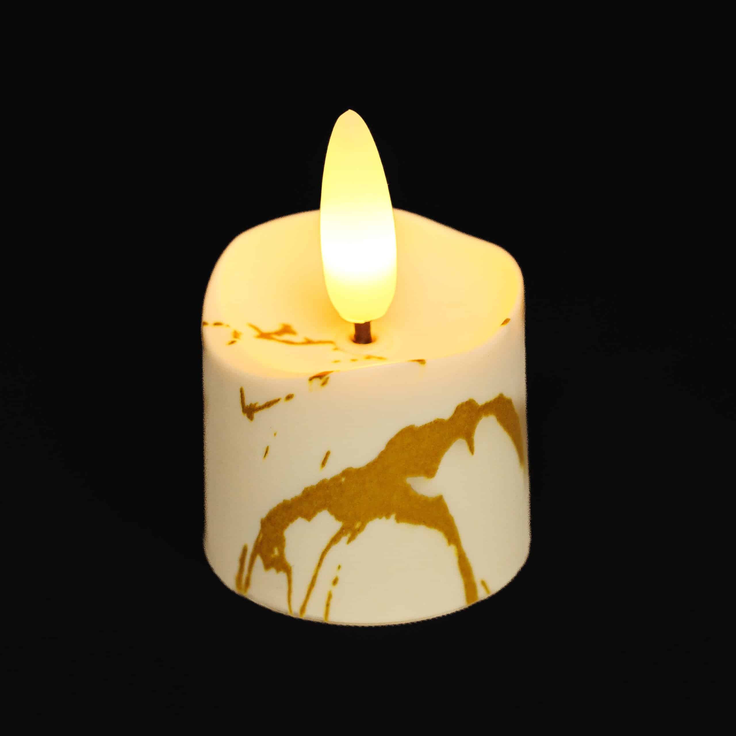 Deze luxe led theelichtjes van LEDindeduisternis hebben een warme marmer look en een 3D vlam die boven een zwart steeltje lijkt te zweven. Dit geeft een elegante uitstraling die sterk lijkt op echte waxinelichtjes. De set is ideaal voor wie sfeer zoekt zonder rook, vuur of rommel van kaarsvet.