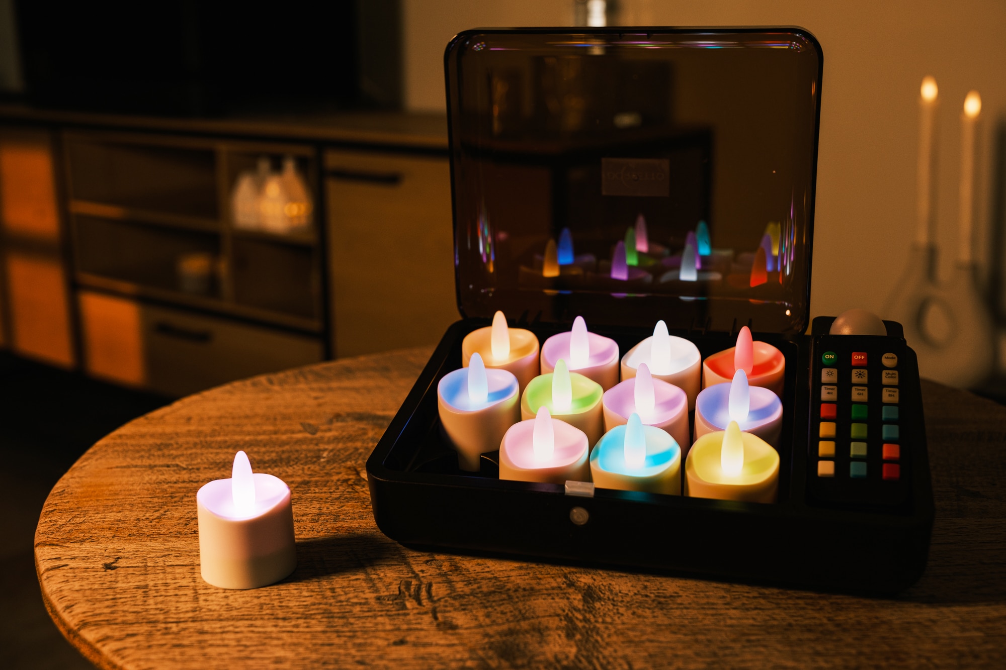 Dit model geeft kleur, sfeer en veel gemak. Deze RGB oplaadbare waxinelichtjes hebben een zachte ronde bovenkant en een realistische vlam die mooi zichtbaar blijft in elke kleur. Perfect voor sfeervol licht binnen en buiten.