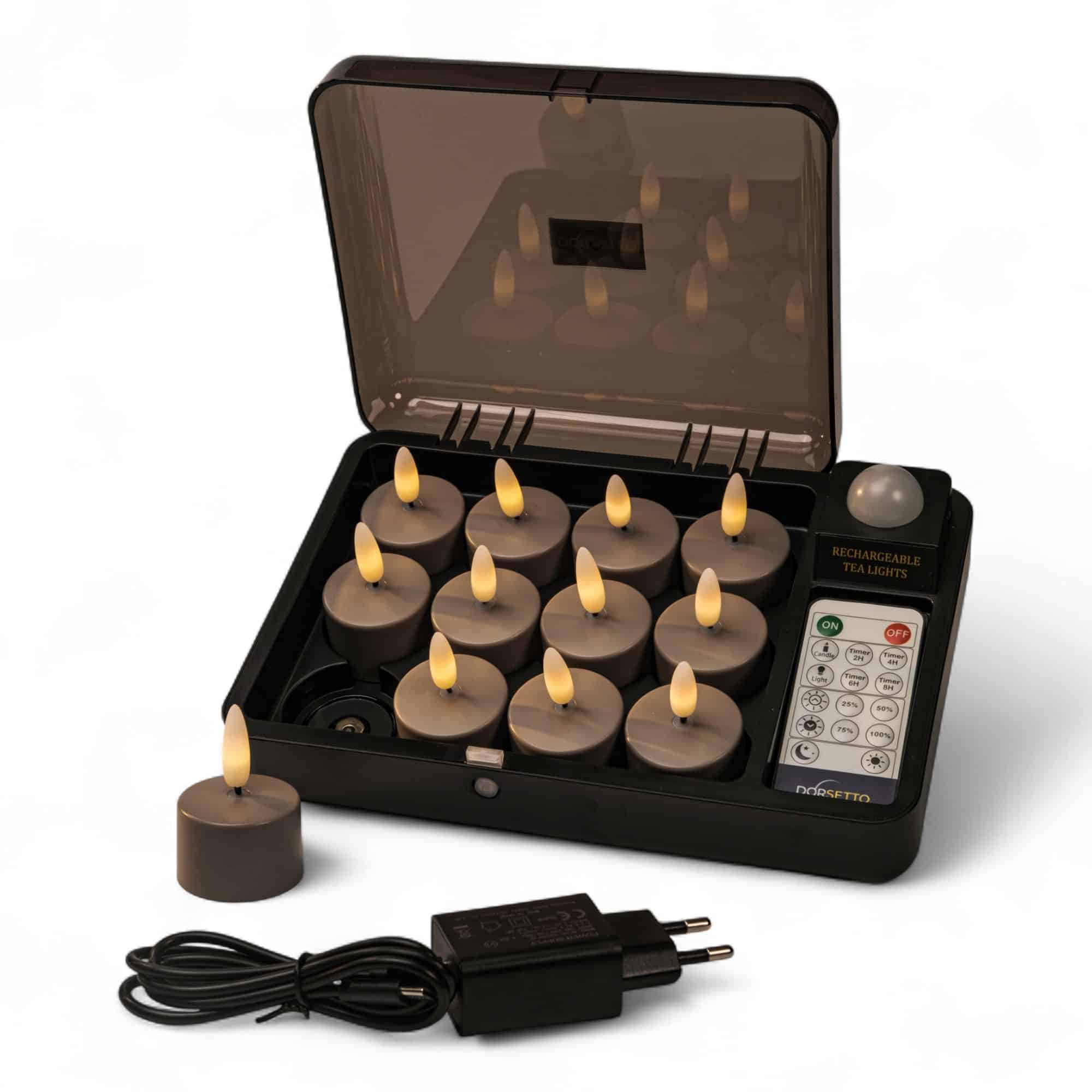 Led waxinelichtjes Charleston Grey – tot 400 uur brandduur, 12 stuks, met afstandsbediening