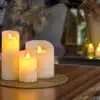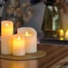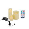 - 3 oplaadbare led waxkaarsen in maten 7,5 x 12,5 cm, 7,5 x 20 cm en 12,5 x 25 cm