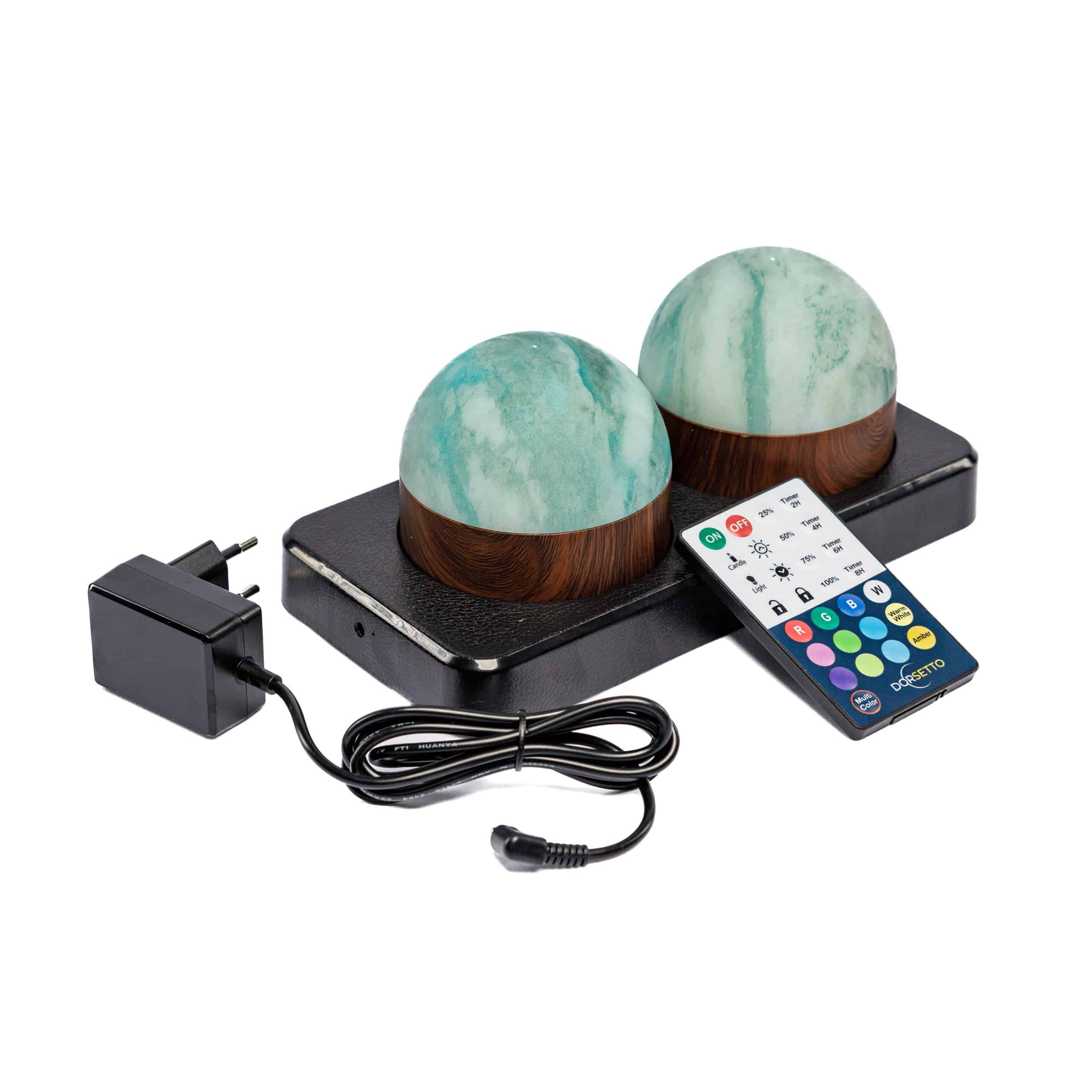 2 oplaadbare tafellampen, waterdicht, timerfunctie, bolvorm, marmer groen, hout look