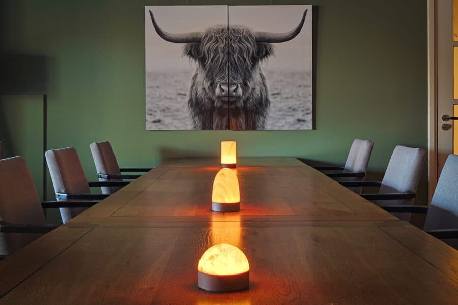 De tafellampen zijn dimbaar in verschillende lichtsterktes van 25%, 50%, 75%, en 100%.