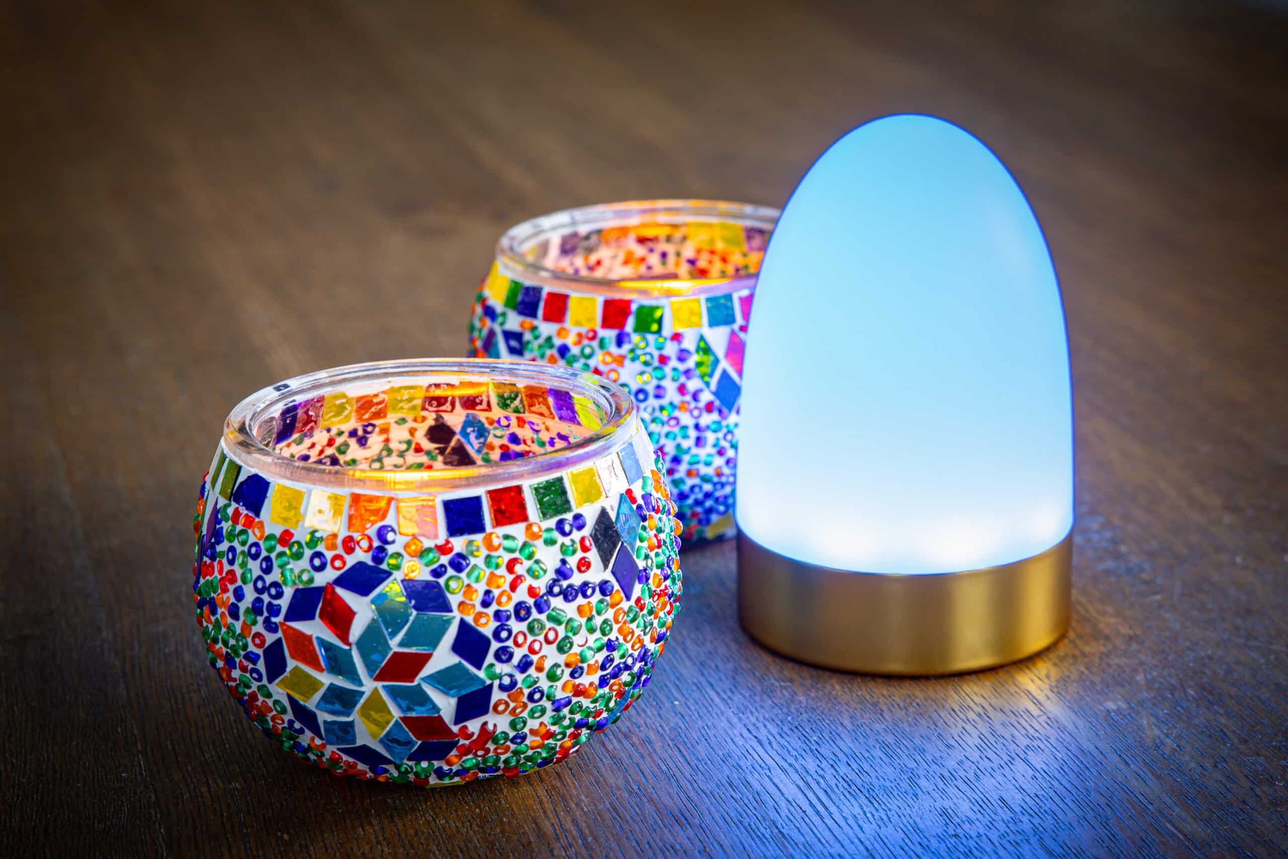 In de oplaadbare tafellampen set zit een natuurlijke flikkering die u ook uit kunt uitzetten met de meegeleverde afstandsbediening.