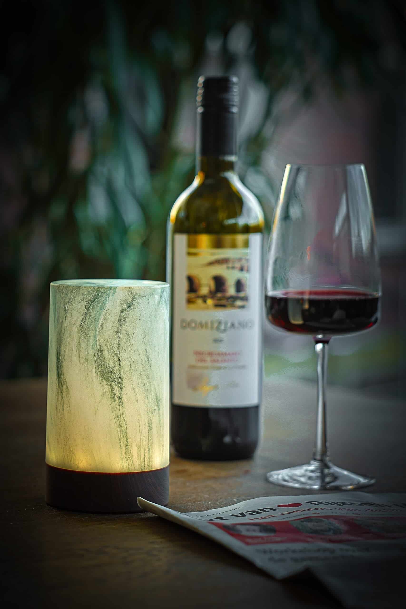 1 oplaadbare led tafellamp, waterdicht, timerfunctie, ovaalvorm, marmer groen, hout look