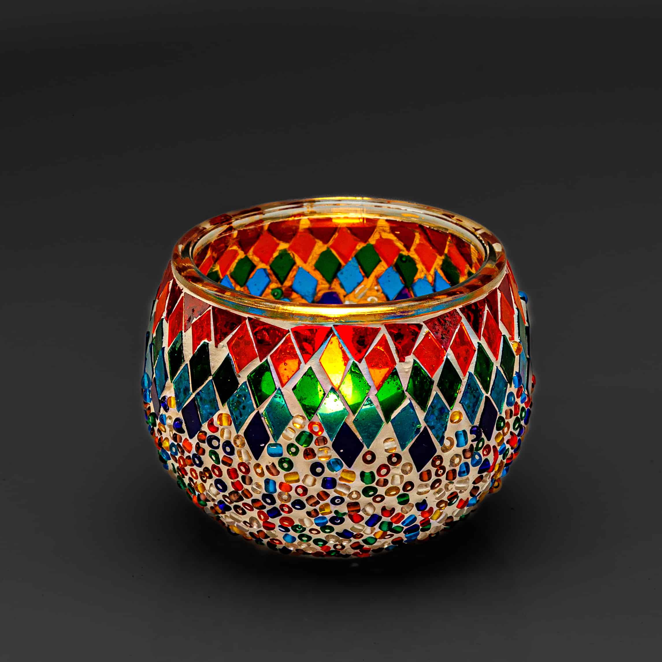 Theelichthouder gekleurde spikkels 9 CM DORSETTO