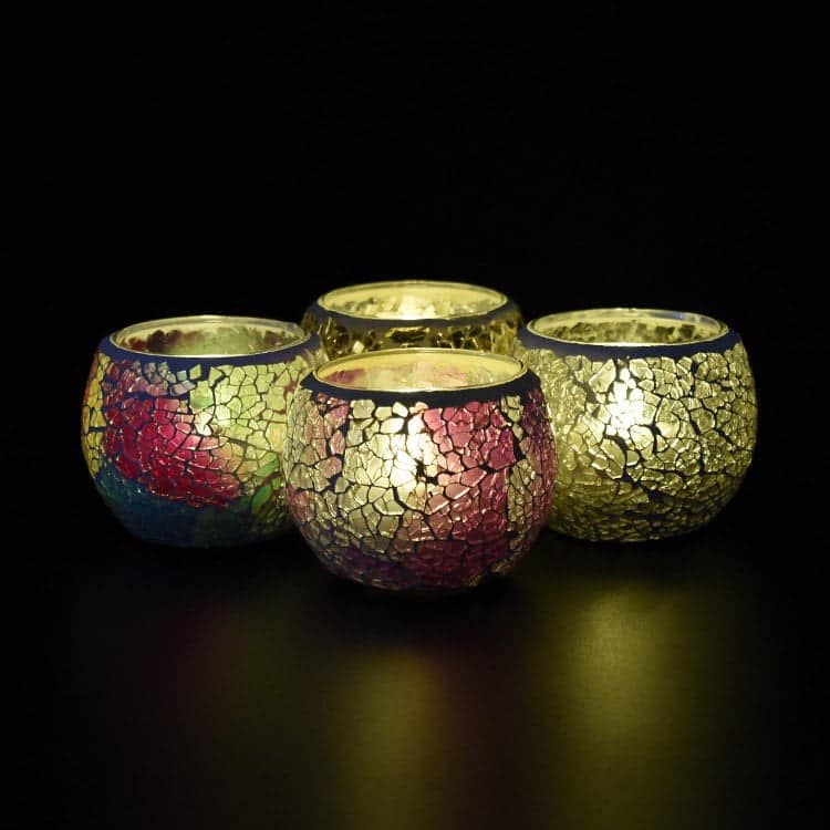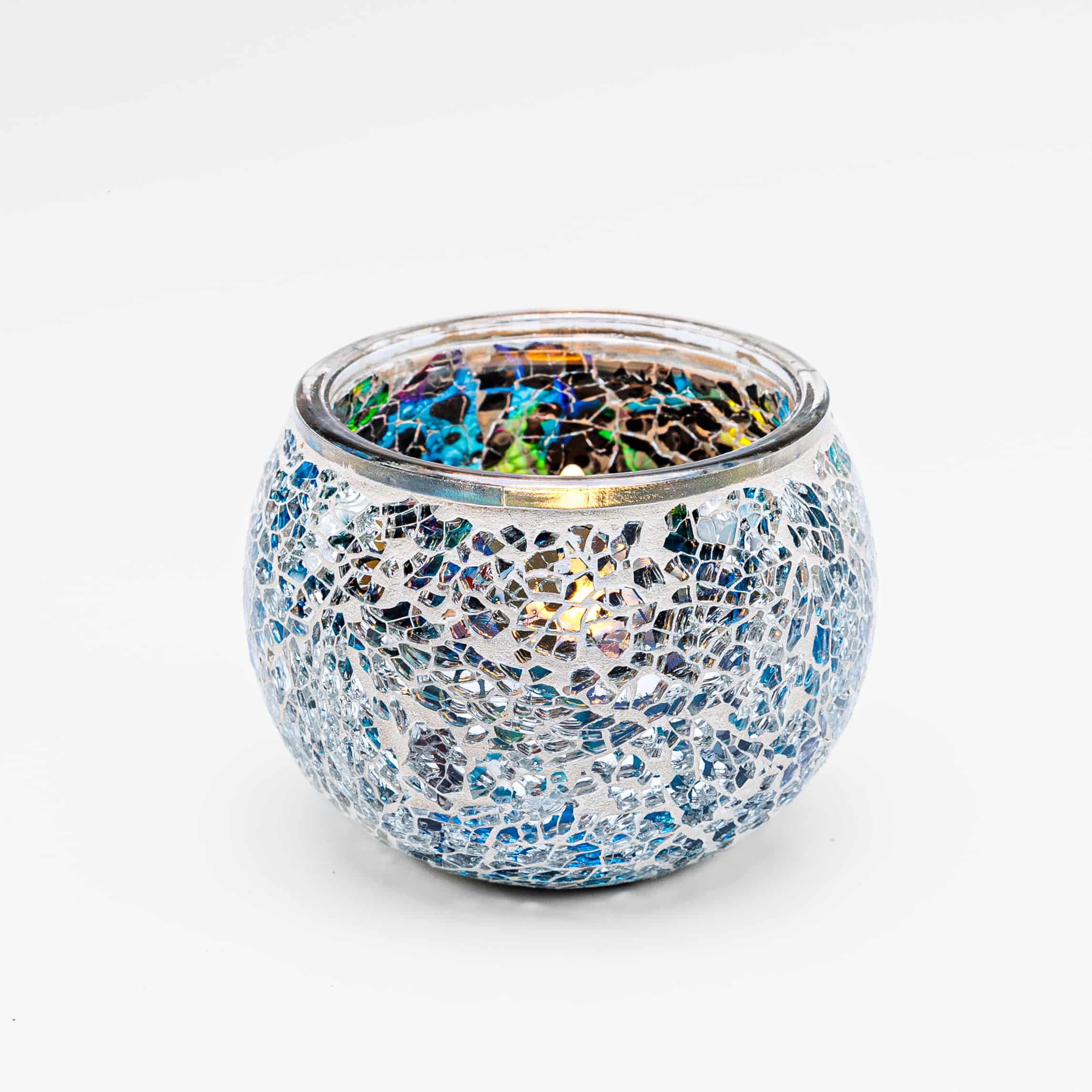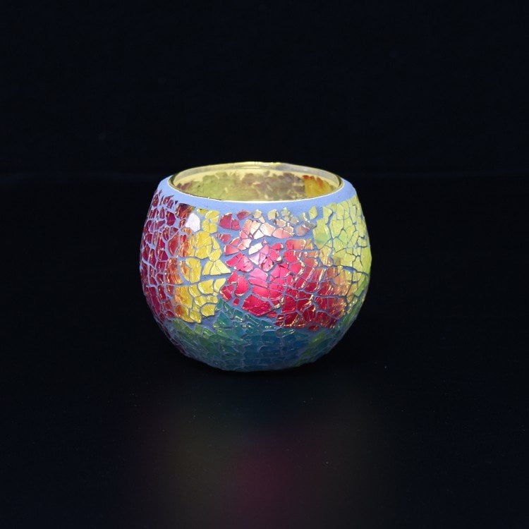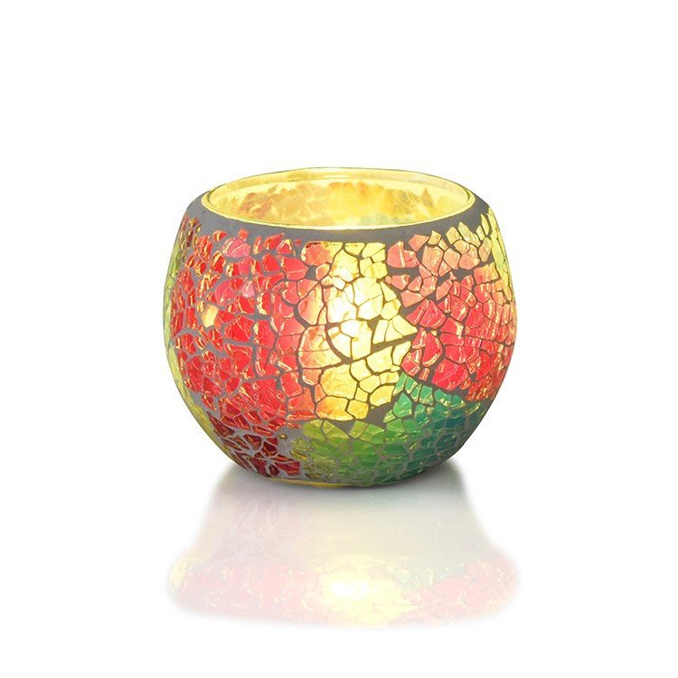 Sfeervolle mozaïek multicolor waxinehouder met mooie kleuren, brand prachtig met een LED theekaarsje erin! Geschikt voor theelichten in alle maten.